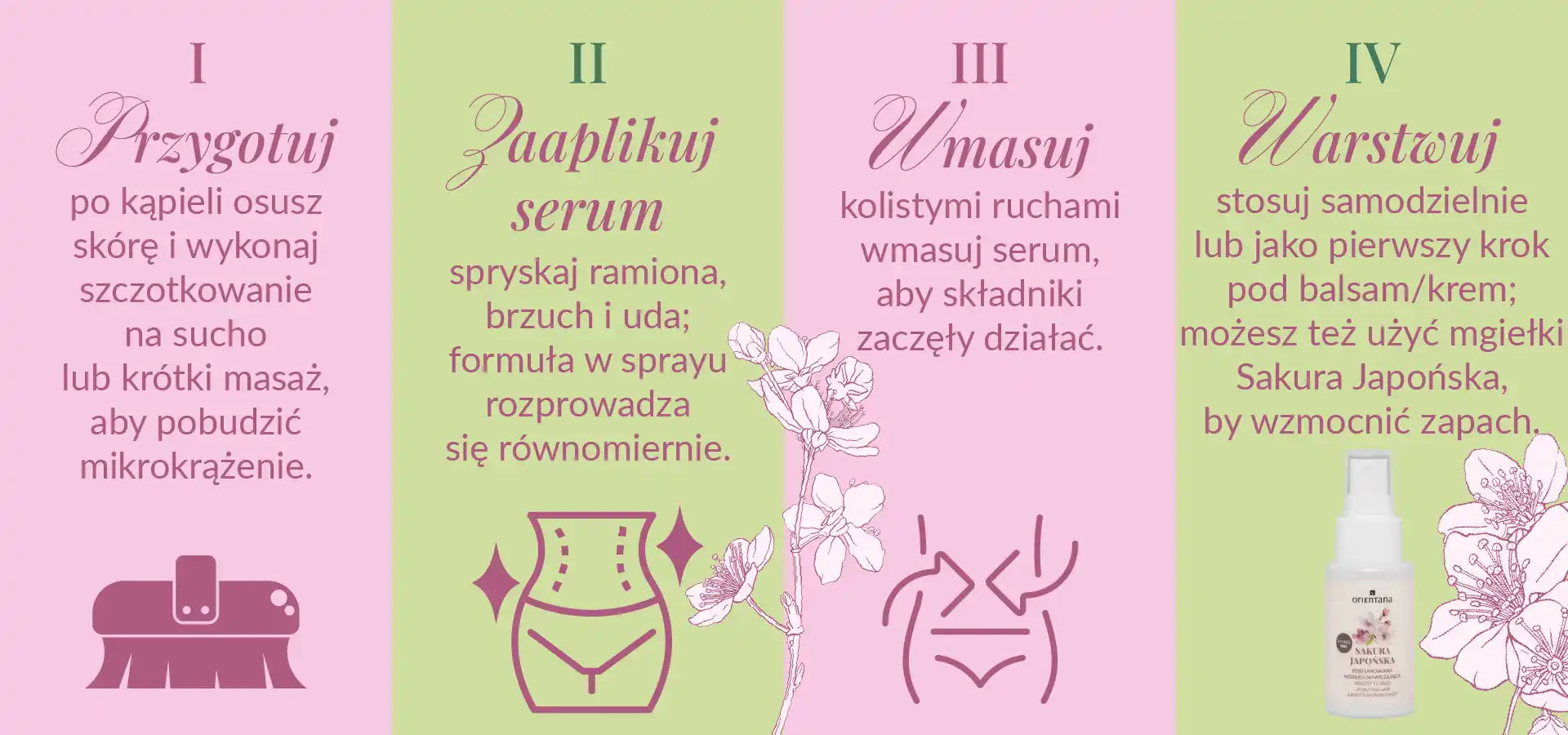 W japońskich miastach ukryte są zielone oazy – ogrody, które przynoszą mieszkańcom chwilę oddechu i spokoju. Zainspirowani tym kontrastem stworzyliśmy serum do ciała Sakura Japońska. To Twój osobisty ogród w środku dnia – moment, w którym zatrzymujesz się, oddychasz i przypominasz sobie o swojej sile i delikatności.
