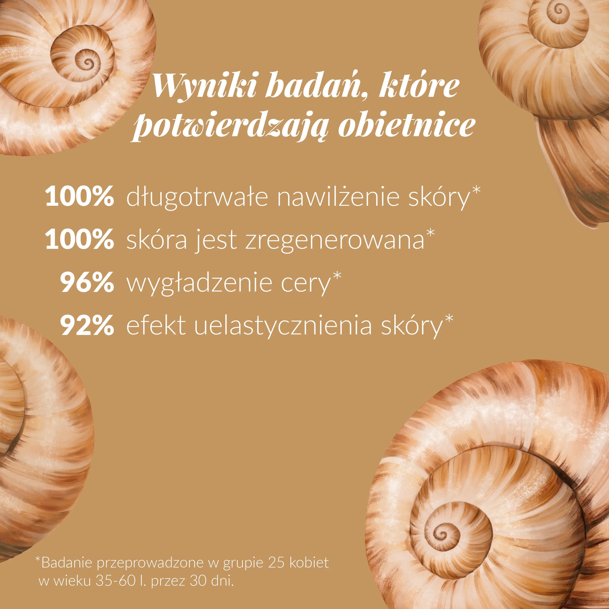 Lekki, wielofunkcyjny krem do twarzy działa bogaty w śluz ślimaka. Intensywnie regeneruje, ujędrnia i nawilża skórę. Skutecznie wygładza zmarszczki, redukuje przebarwienia oraz blizny potrądzikowe, pozostawiając skórę miękką, gładką i promienną.