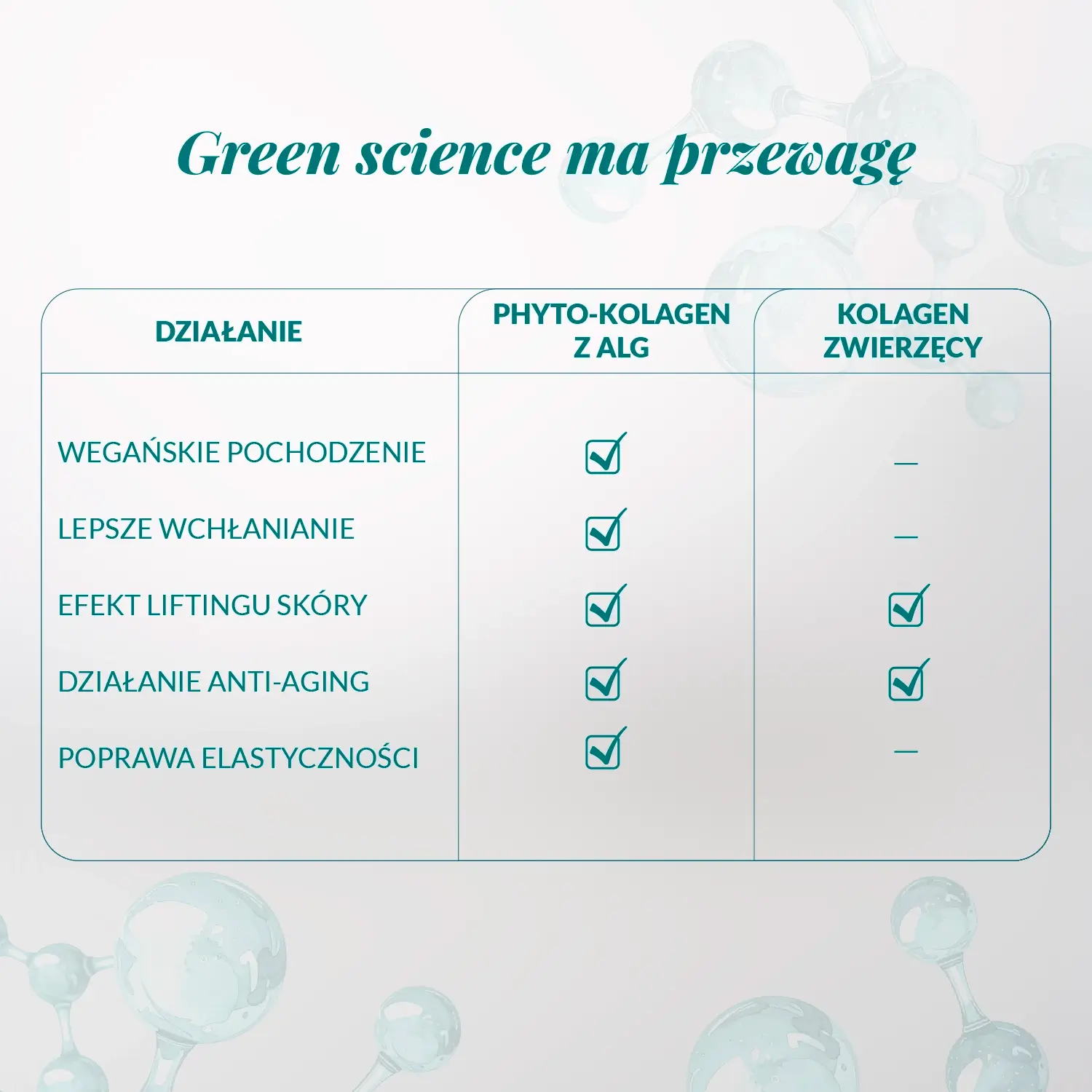 Fito kolagen z mikroalg to wegański i etyczny składnik, w pełni roślinny, pozyskiwany bez udziału składników odzwierzęcych. Dzięki biokompatybilnej strukturze, zbliżonej do kolagenu ludzkiego, doskonale współpracuje ze skórą, wspierając jej jędrność i elastyczność. Jest również stabilny i skuteczny, ponieważ mikroalgi dostarczają białek i polisacharydów, które zachowują swoje właściwości w formulacjach kosmetycznych.