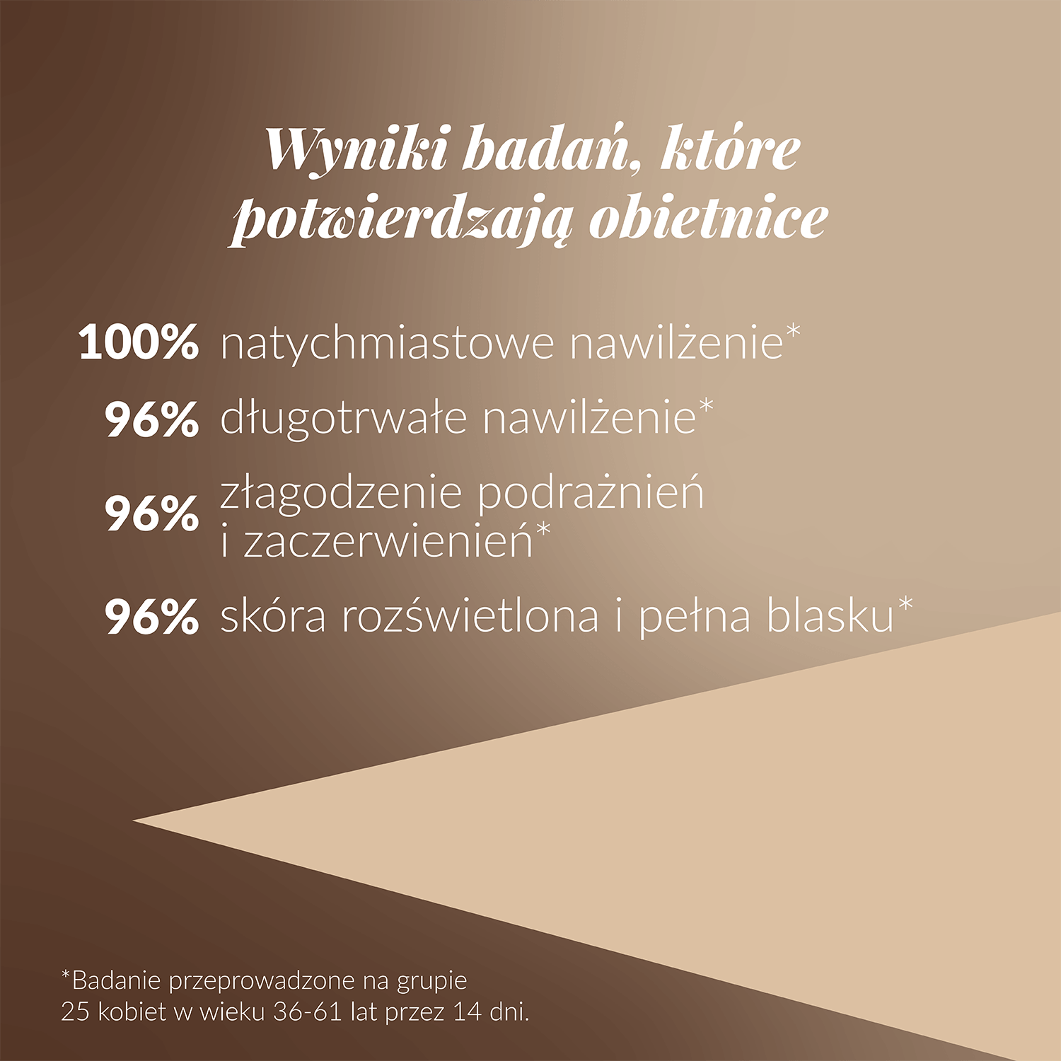 Długotrwałe działanie nawilżające - 96% uczestniczek odczuło długotrwałe nawilżenie skóry, co wskazuje na trwałe działanie produktu wykraczające poza powierzchowną hydratację.
