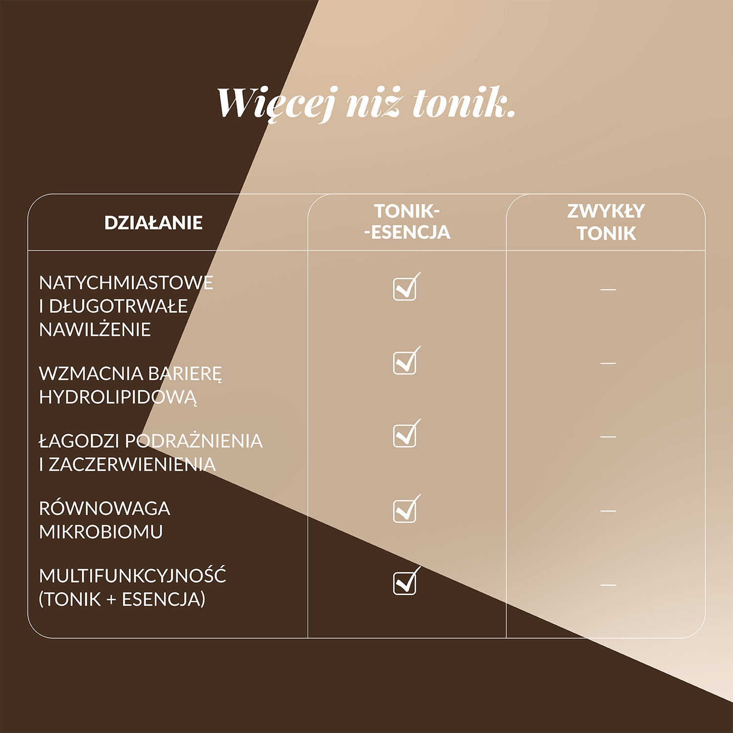 W przeciwieństwie do tradycyjnych toników, nasza formuła jest gęstsza, bogatsza w składniki odżywcze i nawilżające, jak w najlepszych esencjach pielęgnacyjnych. Dzięki temu już pierwszy produkt po oczyszczaniu dostarcza skórze glukonolaktonu, protein ryżu, witaminy E i ekstraktów roślinnych o działaniu przeciwstarzeniowym i antyoksydacyjnym.